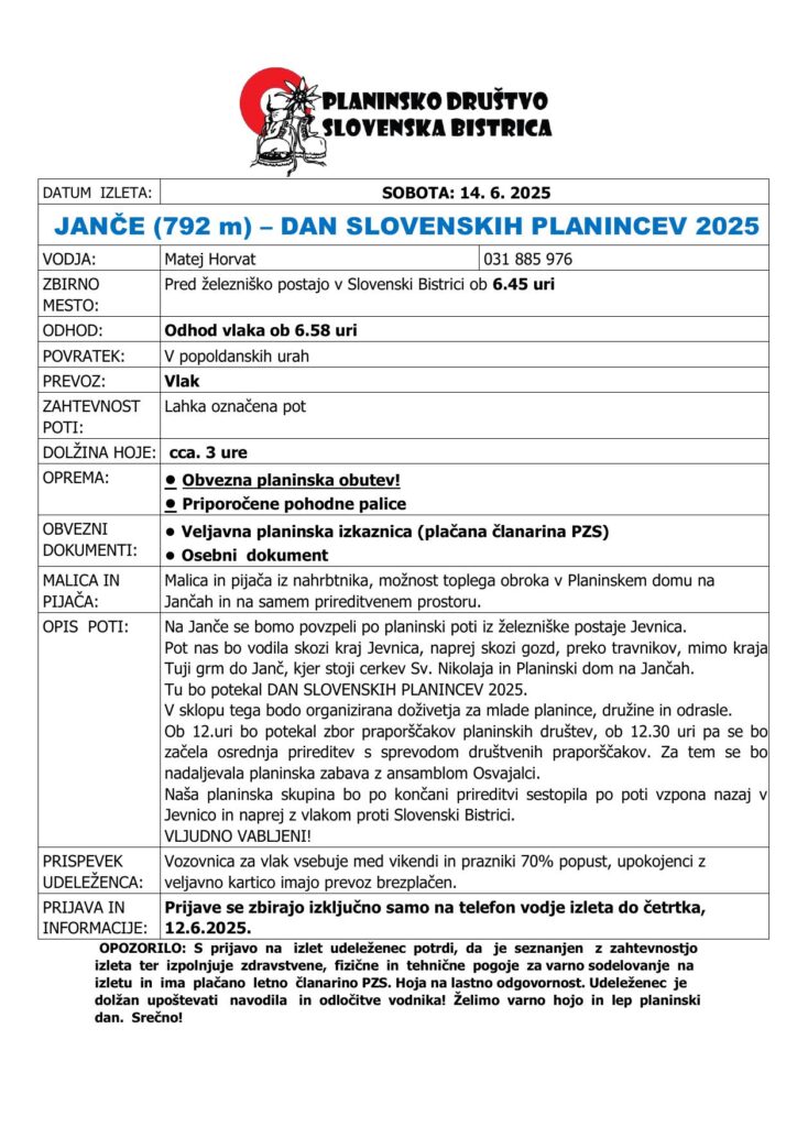 Dogodka se bomo udeležili tudi člani PD Slovenska Bistrica – lepo vabljeni, da se nam pridružite!