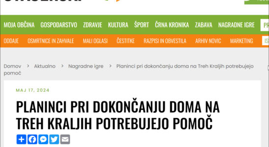 Drugi o nas: www.stajerskival.si/sl/news/nagradne-igre/slovenjebistriski-planinci-pri-dokoncanju-doma-na-treh-kraljih-potrebujejo-pomoc.html POMAGAJTE NAM DOKONČATI PLANINSKI DOM NA TREH KRALJIH – PODPRITE NAS Z DONACIJO: Podatki za nakazilo na TRR: Koda namena: CHAR Namen: Donacija za Planinski dom…