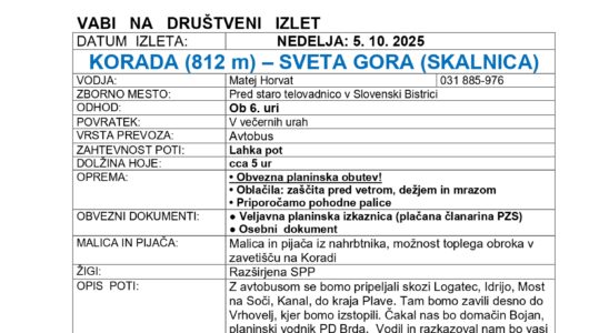 Za zadnji vikend v avgustu smo imeli v programu planinskega društva razpisan dvodnevni izlet v Spodnje Bohinjske gore. Žal nas je slaba vremenska napoved za soboto prisilila, da smo ga…