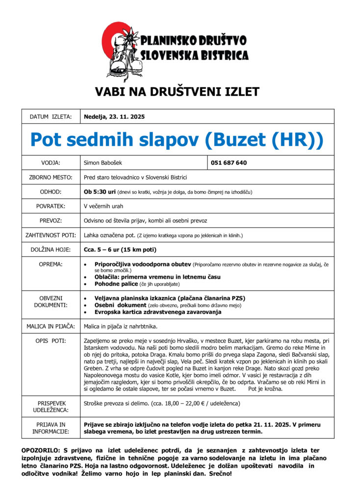 VABILO – POT SEDMIH SLAPOV – 23.11.2025