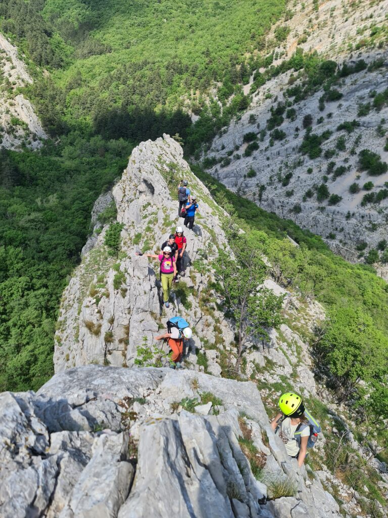 Na prelepo sobotno jutro se nas je zbralo 9 in se hitro podamo k našim sosedom v Italijo v dolino Glinščice. Po kratkem uvodu se podamo v ferato Bruno Biondi…