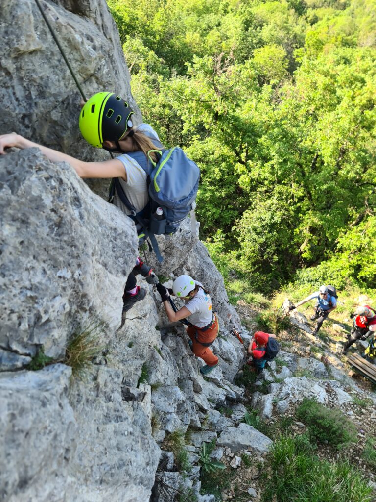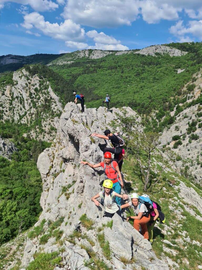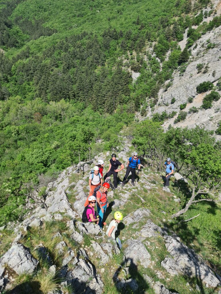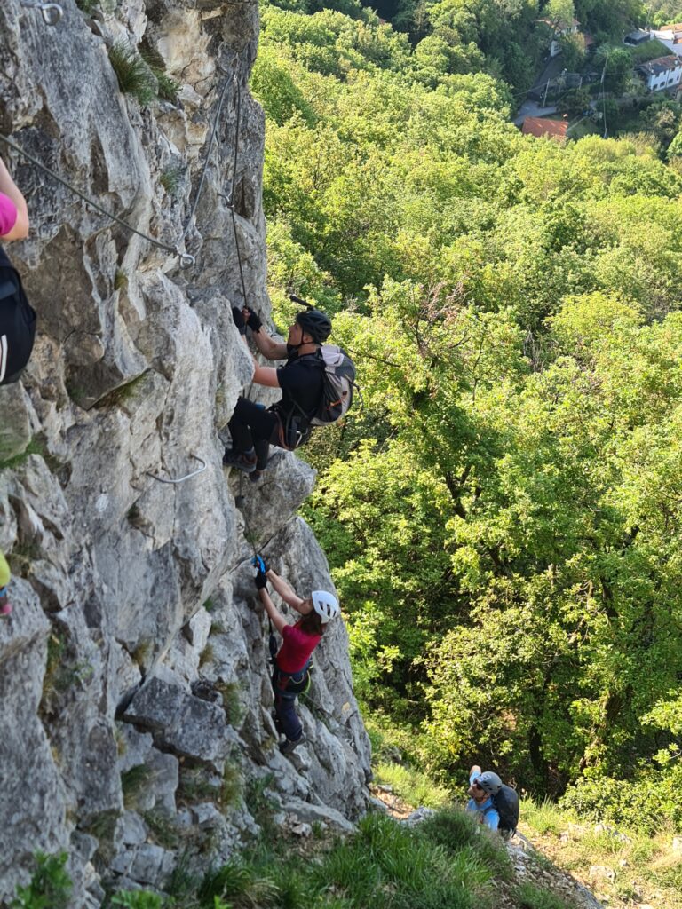 Na prelepo sobotno jutro se nas je zbralo 9 in se hitro podamo k našim sosedom v Italijo v dolino Glinščice. Po kratkem uvodu se podamo v ferato Bruno Biondi in nato še obdelamo zimsko Rožo. Obe ferati sta lepi in prevsem ob plezanju smo imeli na voljo prelepe poglede na okolico in celo dolino. Po sestopu se odpravimo še proti Comicijevemu grebenu kjer se spoznamo z poplezavanjem brez varovanja in kompaktnosti skale. Sestop naredimo mimo Marijine cerkve na Pečah in se podamo v vas Milje na zaslužen sladoled in nato na Debeli rtič na prijetno osvežitev.