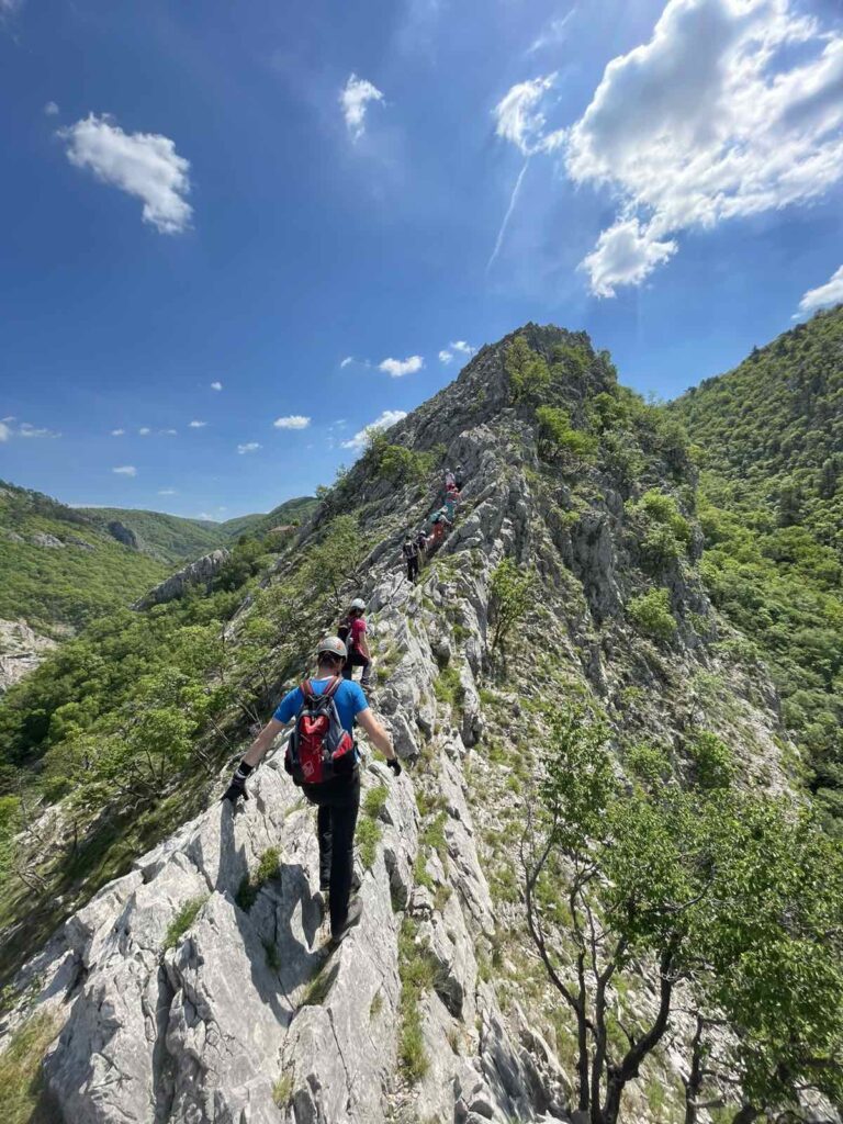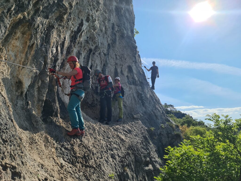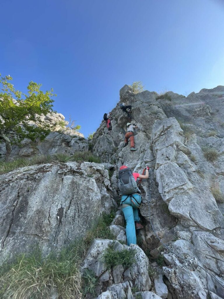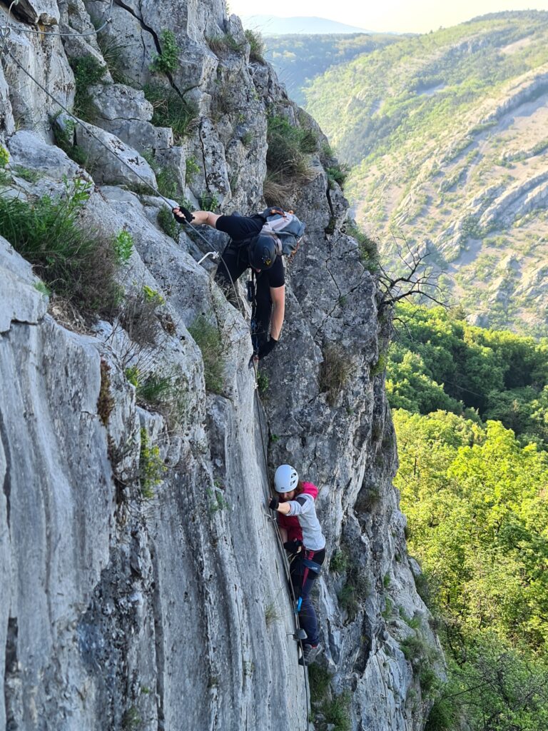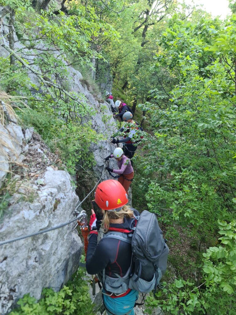 Na prelepo sobotno jutro se nas je zbralo 9 in se hitro podamo k našim sosedom v Italijo v dolino Glinščice. Po kratkem uvodu se podamo v ferato Bruno Biondi in nato še obdelamo zimsko Rožo. Obe ferati sta lepi in prevsem ob plezanju smo imeli na voljo prelepe poglede na okolico in celo dolino. Po sestopu se odpravimo še proti Comicijevemu grebenu kjer se spoznamo z poplezavanjem brez varovanja in kompaktnosti skale. Sestop naredimo mimo Marijine cerkve na Pečah in se podamo v vas Milje na zaslužen sladoled in nato na Debeli rtič na prijetno osvežitev.