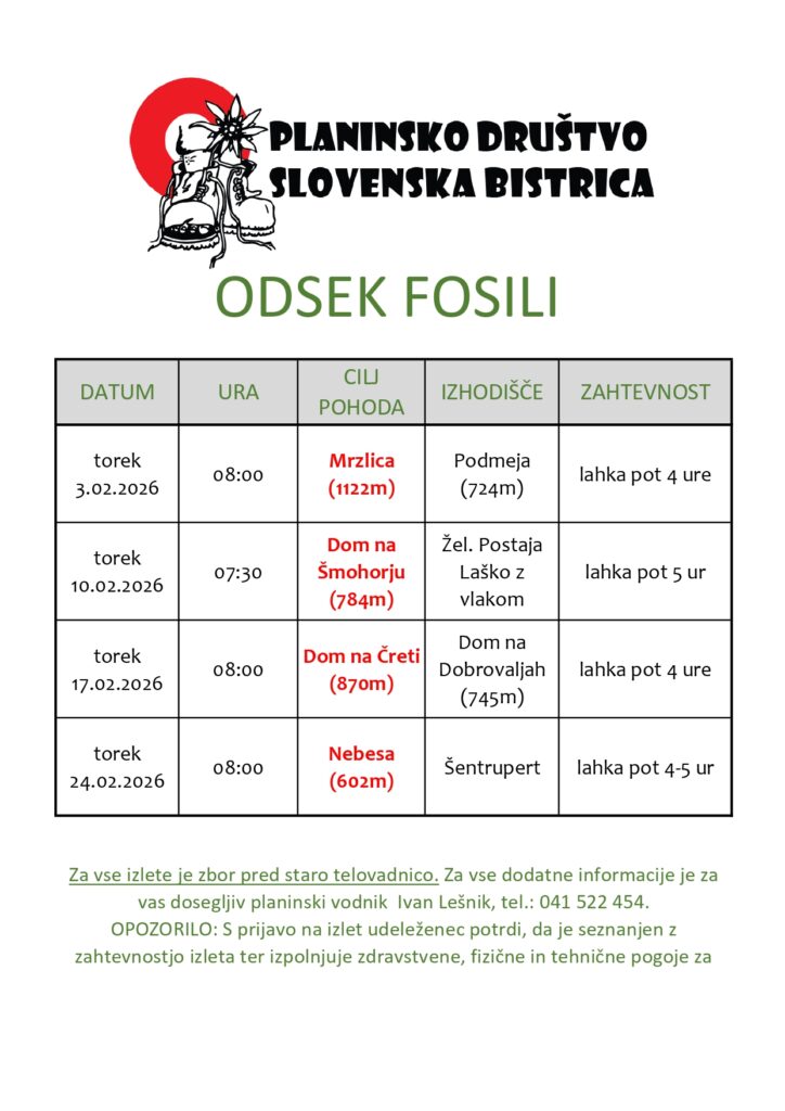 ODSEK FOSILI – IZLETI V FEBRUARJU