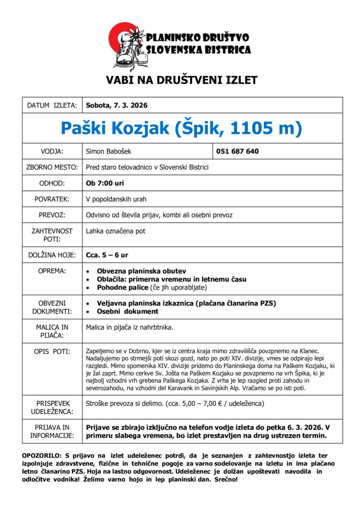 VABILO – PAŠKI KOZJAK – 7.03.2026